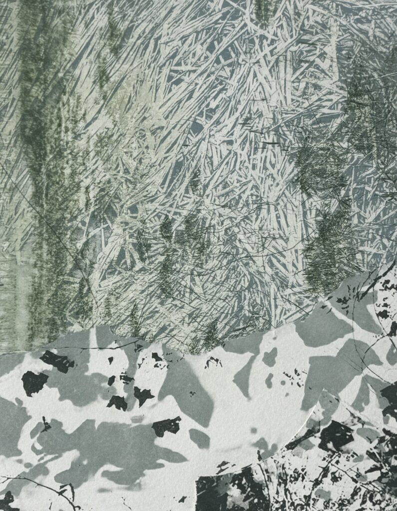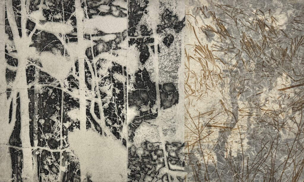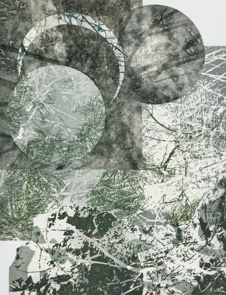 Reservation Bog, intaglio collage, 24.5″ x 22.5”, 2026